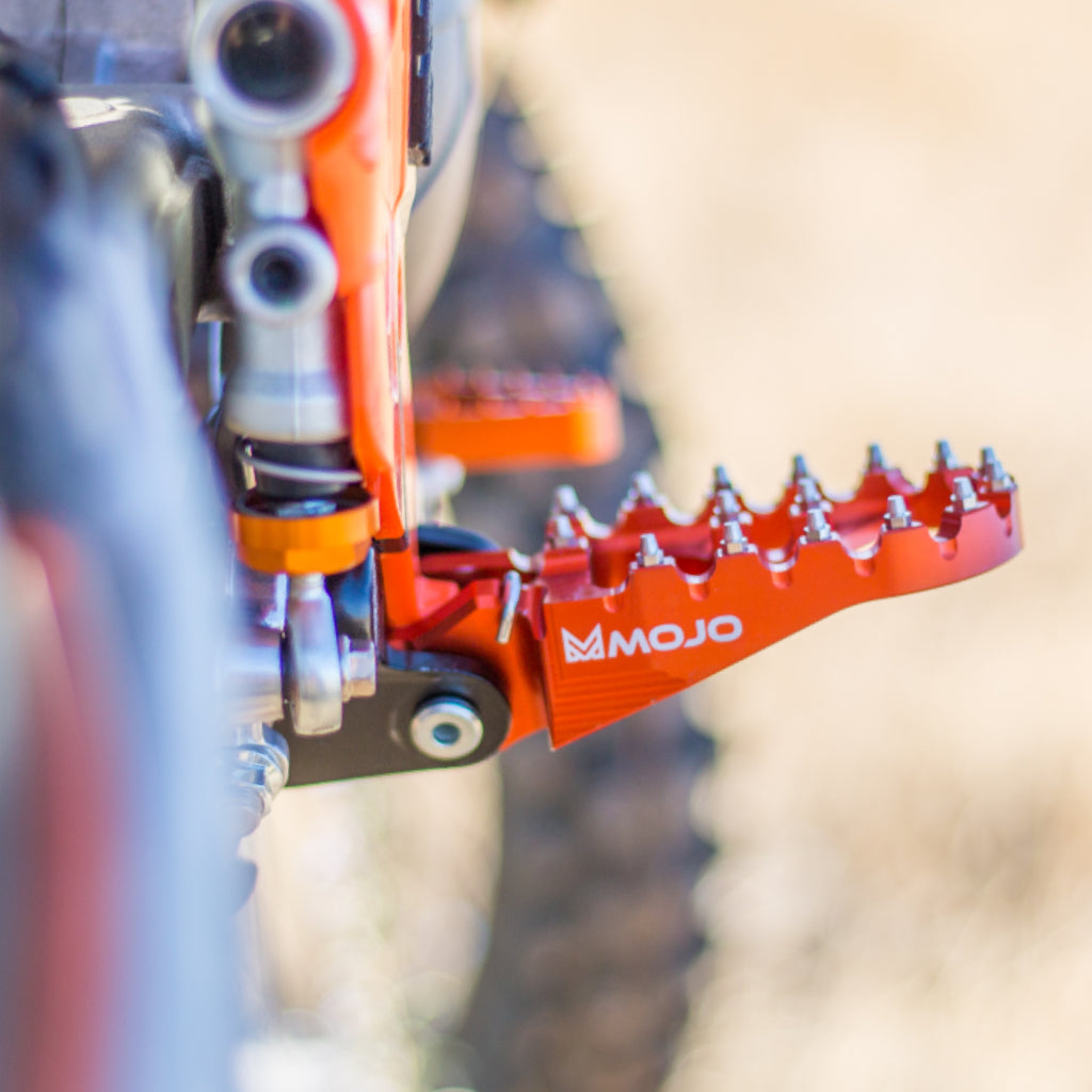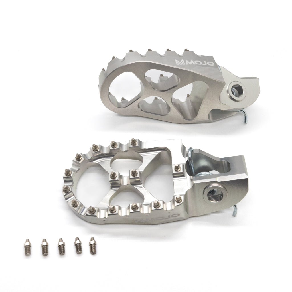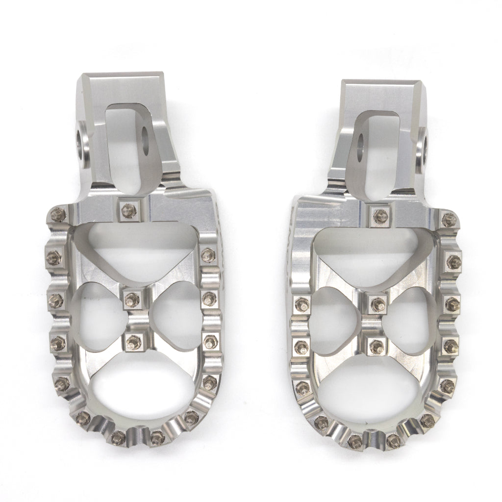 Lighter, Stronger, BETTER! These foot pegs are simply the best you can get for your KTM dirt bike. Replaceable stainless steel teeth give twice the grip without destroying your boots. You will feel more in control of the bike giving you the confidence to take your speed to the next level. Billet machined from a solid chunk of 7075 - T6 aluminum providing unsurpassed strength and durability. You will love these pegs - we guarantee it!