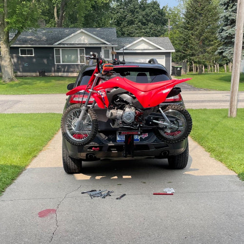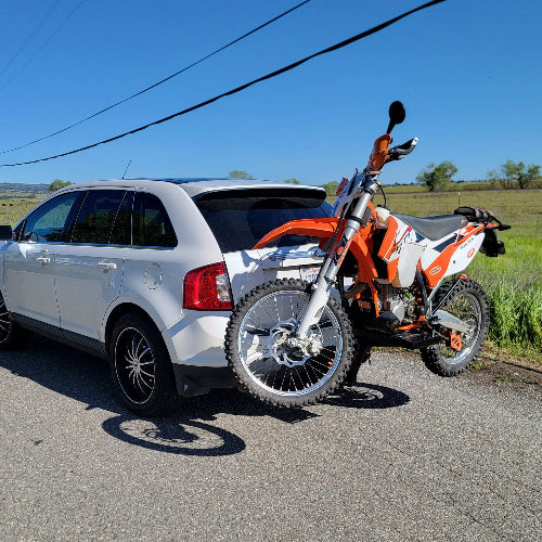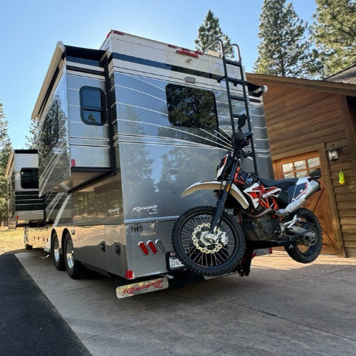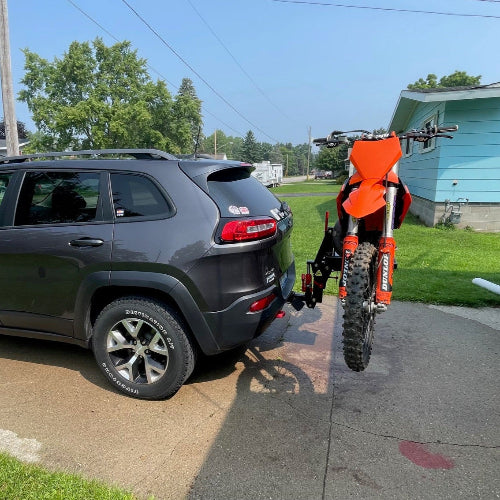 Never again will you have to ask a friend or bystander to help you load your bike. Our hauler lowers far enough to save your back while the integrated bottle jack effortlessly lifts your bike into the lock-out position.