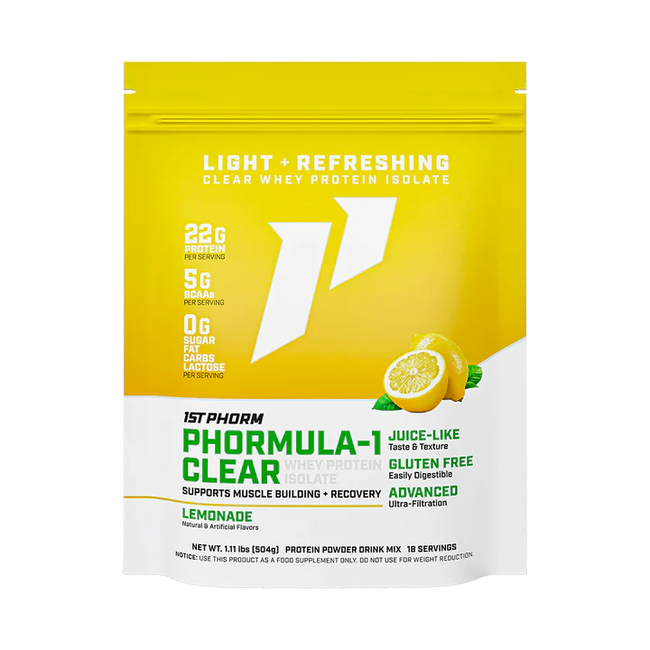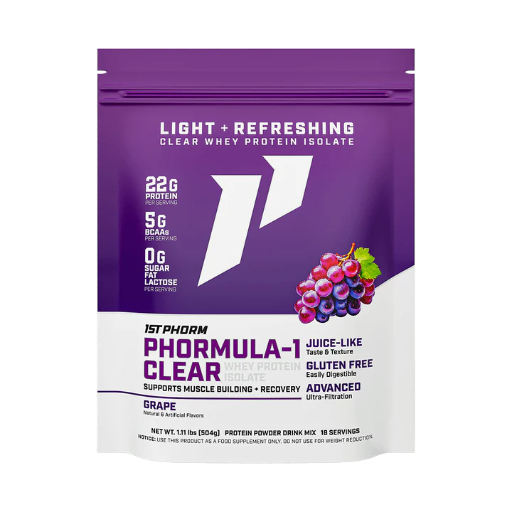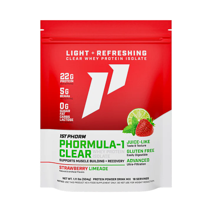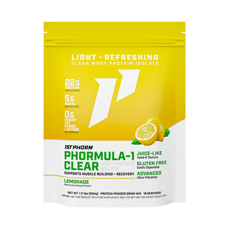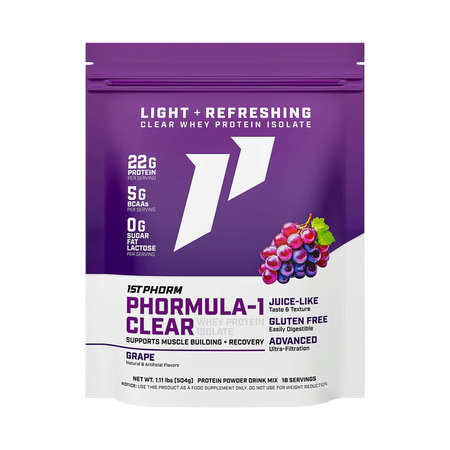 Phormula-1 Clear is a clear whey protein isolate. This means it undergoes extra filtration for a super light, juice-like taste and texture. On the other hand, Phormula-1 is not filtered as extensively. While this does not impact the quality of the protein, Phormula-1 Clear protein powder is a great alternative for those who don't like the "milky" taste that a more traditional whey protein powder can have.