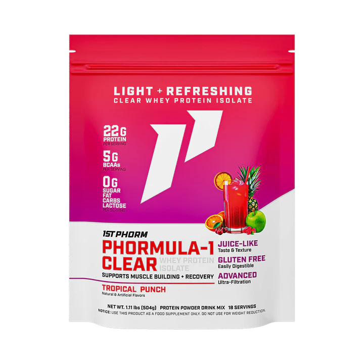 Experience the refreshing taste and unmatched quality of Phormula-1 Clear protein powder - The perfect clear whey protein powder for anyone looking for a light, fruity, and juice-like alternative to thicker milkshake-style shakes and typical protein drinks. Whether you need protein post-workout, before hitting the gym, or throughout the day ... Phormula-1 Clear delivers clean, high-quality protein.