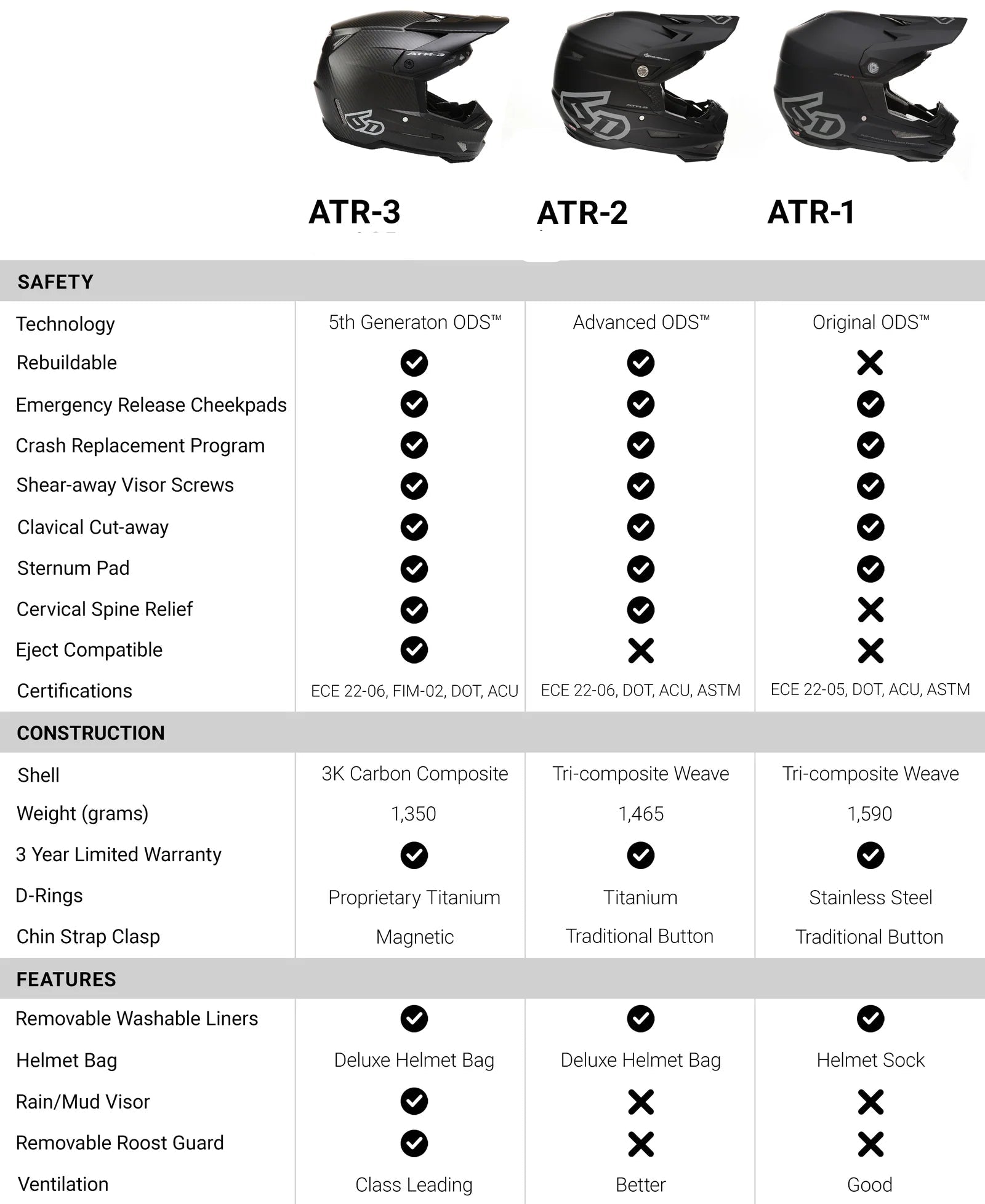 Experience the Gold Standard of motorcycle helmet technology with the 6D ATR-3. Building on the success of its predecessor, the ATR-3 offers unmatched innovation and performance. Featuring its cutting-edge fifth-generation Omni-Directional Suspension™ (ODS) system and a unique rebuildable design, this helmet sets a new standard in head protection. The ATR-3 was engineered to provide superior energy management capabilities, effectively mitigating impacts in a broader range of demanding conditions. Elevate your riding experience with the unparalleled protection and advanced design of the 6D ATR-3.