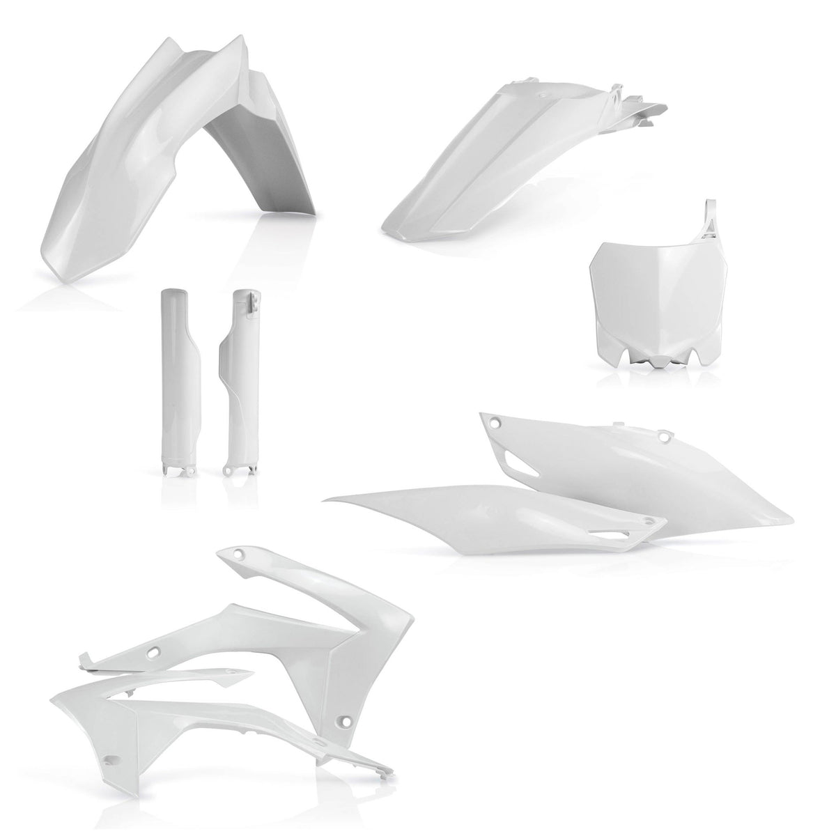 - Full kits include front fender, rear fender, side panels, radiator shrouds, front number plate and lower fork cover set