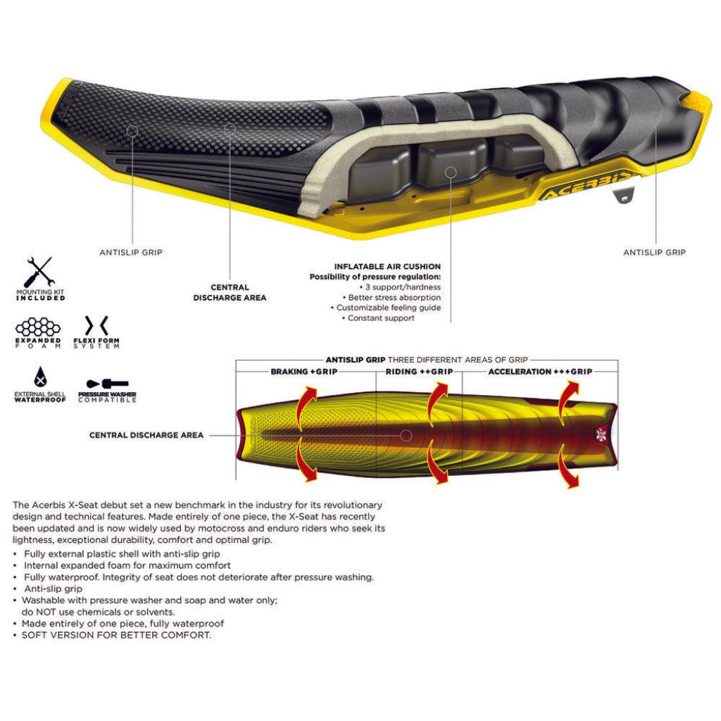 After a month of testing by official Yamaha Monster Racing Team MX1 riders, David Phillippaerts and Joshua Coppins, Acerbis is proud to introduce a completely new and revolutionary product: The X-Seat. Its light weight (1,450 grams) and comfort, combined with an extremely high anti-slip, make this product indispensable for every rider.