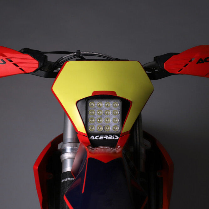 Here is the new Acerbis Headlight VSL, the new led headlight for Gasgas 2024 designed for Offroad use only that guarantees maximum brightness, depth of field and better clarity of details and profiles, in conditions of scarcity or absence of light.The new led headlight, which can be easily mounted by taking advantage of the original headlight frame, is designed to guarantee an unprecedented performance and an incredibly powerful light beam thanks to the 16 48W LEDs with 4320 Lumen. A highly safe product that is IP68-guaranteed and can work at operating temperatures between -40°C and +85°C.Acerbis Headlight VSL is compatible with the frames of all GasGas Enduro models equipped with battery, 2T and 4T. What are you waiting for to try our LED headlight? You'll have a clearer view of the course and ride harder, risking less.