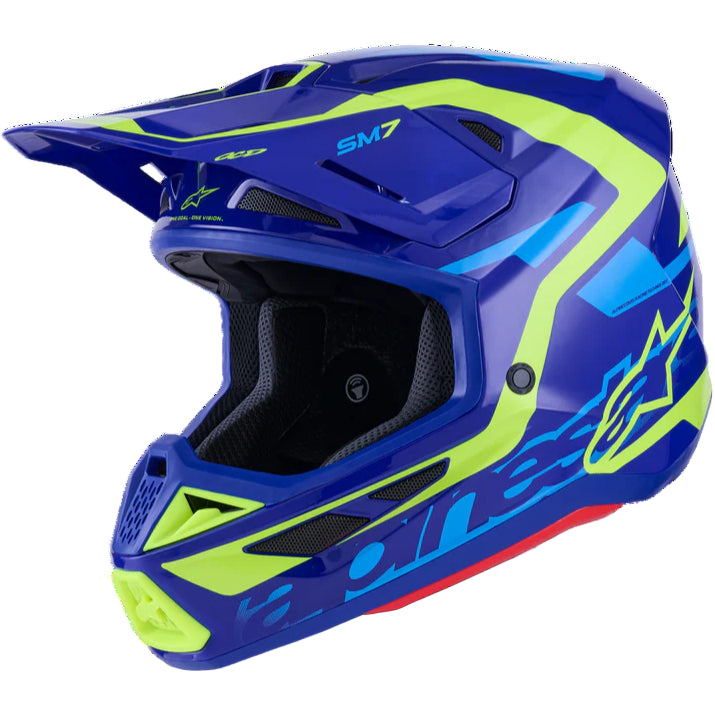 - Specific rotational impact protection is provided by the combination of the internal shape and specific coating of the EPS liner, coupled to specially-developed surface in the comfort liner. This Alpinestars Patented Specific Coating technology reduces rotational acceleration transmitted to the rider’s head: the S-M7 Helmet exceeds the new ECE 22.06 Peak Rotational Acceleration standard by 76%.
