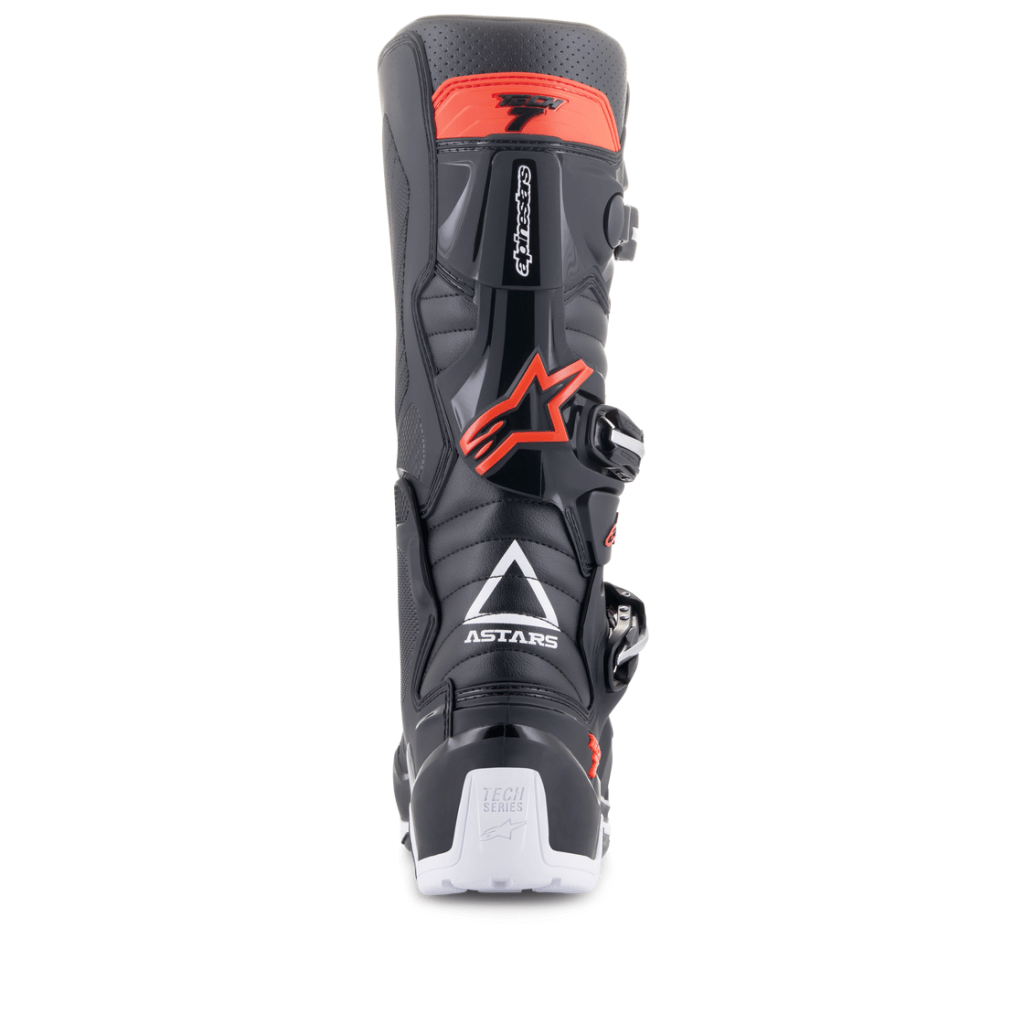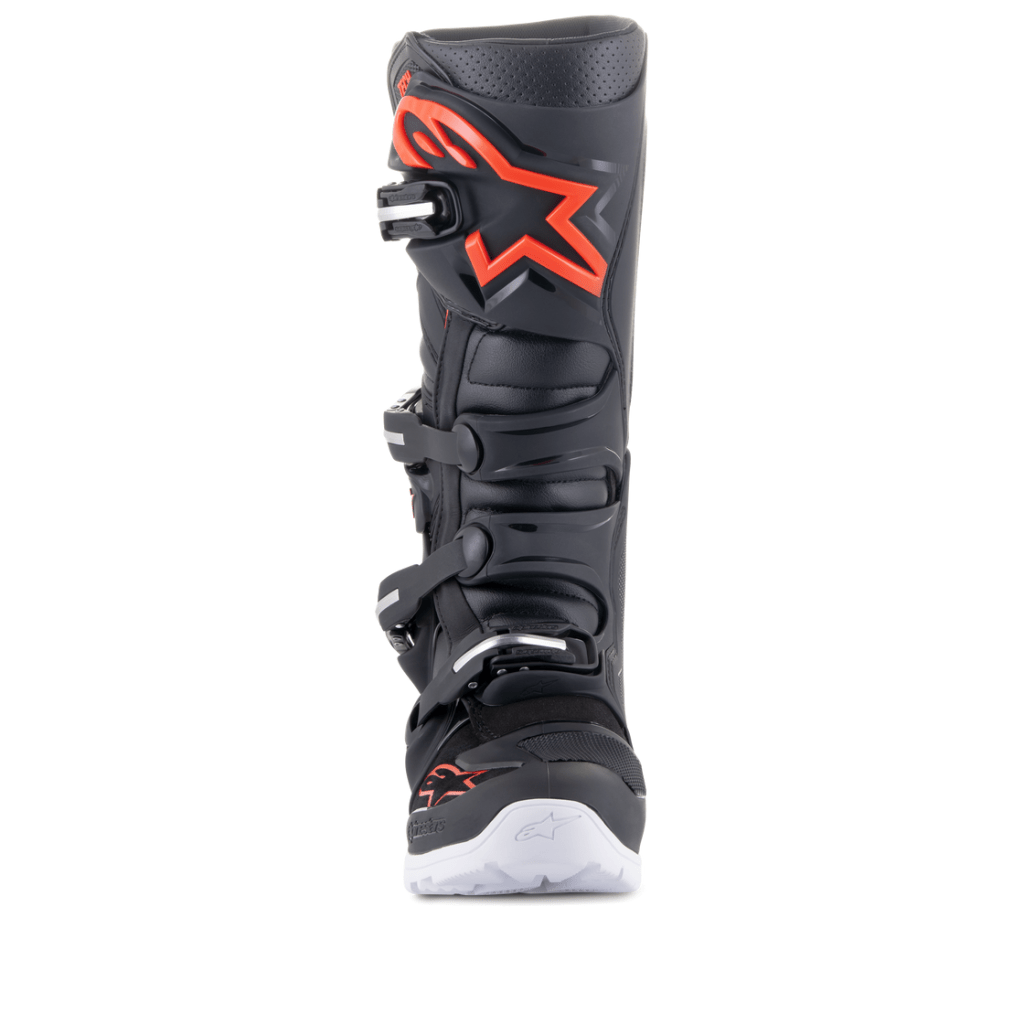 - Contoured calf protector plate is injected with high modulus polymer for impact resistance and incorporates Alpinestars' developed blade flex system for greater precision control and movement, added protection for heel and Achilles tendon and helps prevent hyperflexion.