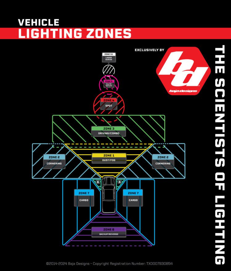 This zone illuminates the wheel wells, undercarriage, or any other part of the vehicle that can benefit from great visibility while moving through tight spaces and jagged terrain.