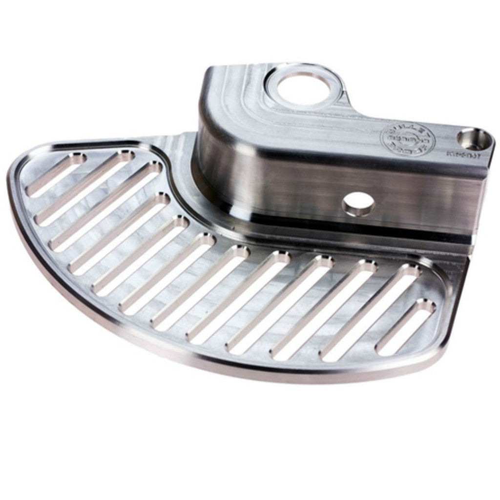 The only disc guard on the market made from 1 piece of aluminum. BPD does this to ensure you don't have a bolt brake, fall out, or get bent causing a failure. GET BULLET PROOF!