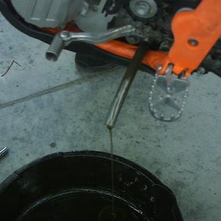 Change the oil in your KTM or Husqvarna dirt bike without removing your skidplate or creating a mess. Simply lean the bike over on to a stand or against the wall, remove your OEM drain plug from the crankcase, then install our Bullet Proof Designs Oil Drain Tool. Place the bike back on the stand or lean over the drain pan, pull the cap then let the oil drain. Once all of the oil is drained, simply remove the Bullet Proof Designs Oil Drain Tool and replace it with the OEM drain plug. Pour fresh oil in then go ride!