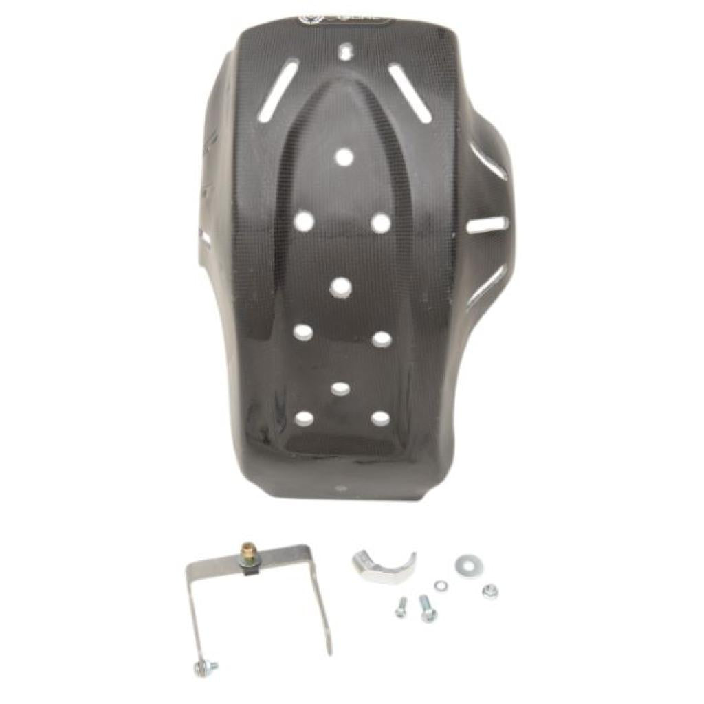 - Extremely lightweight carbon fiber composite construction, this skid plate has strength in all the right places to protect your cases and frame rails from severe damage. From alternator to water pump and cradle to linkage, this skid plate will protect everything in-between.