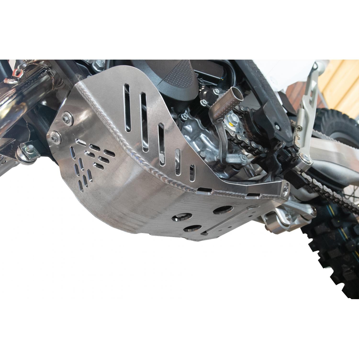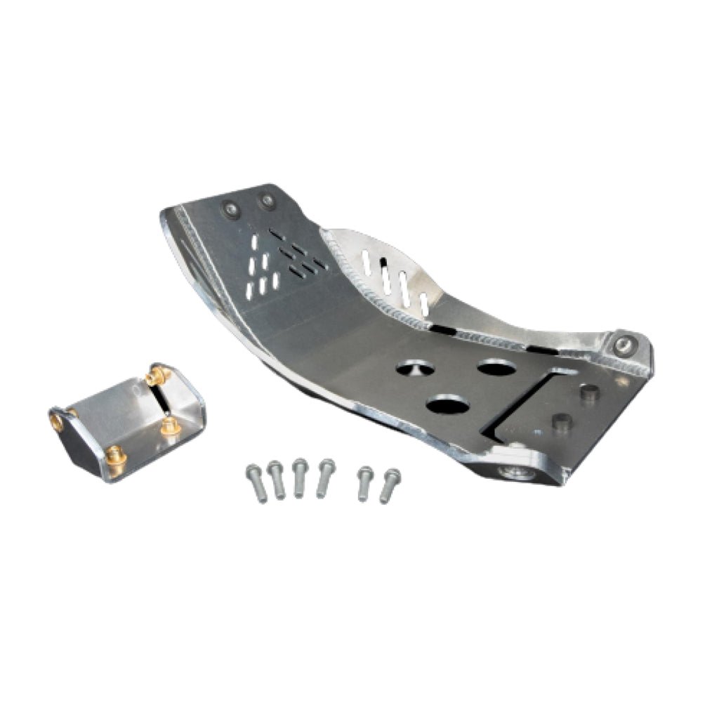 Manufactured from CNC-machined 5052H32 aluminum alloy for strength and light weight. Protects vulnerable engine cases, covers and frame rails from the elements without being bulky.
