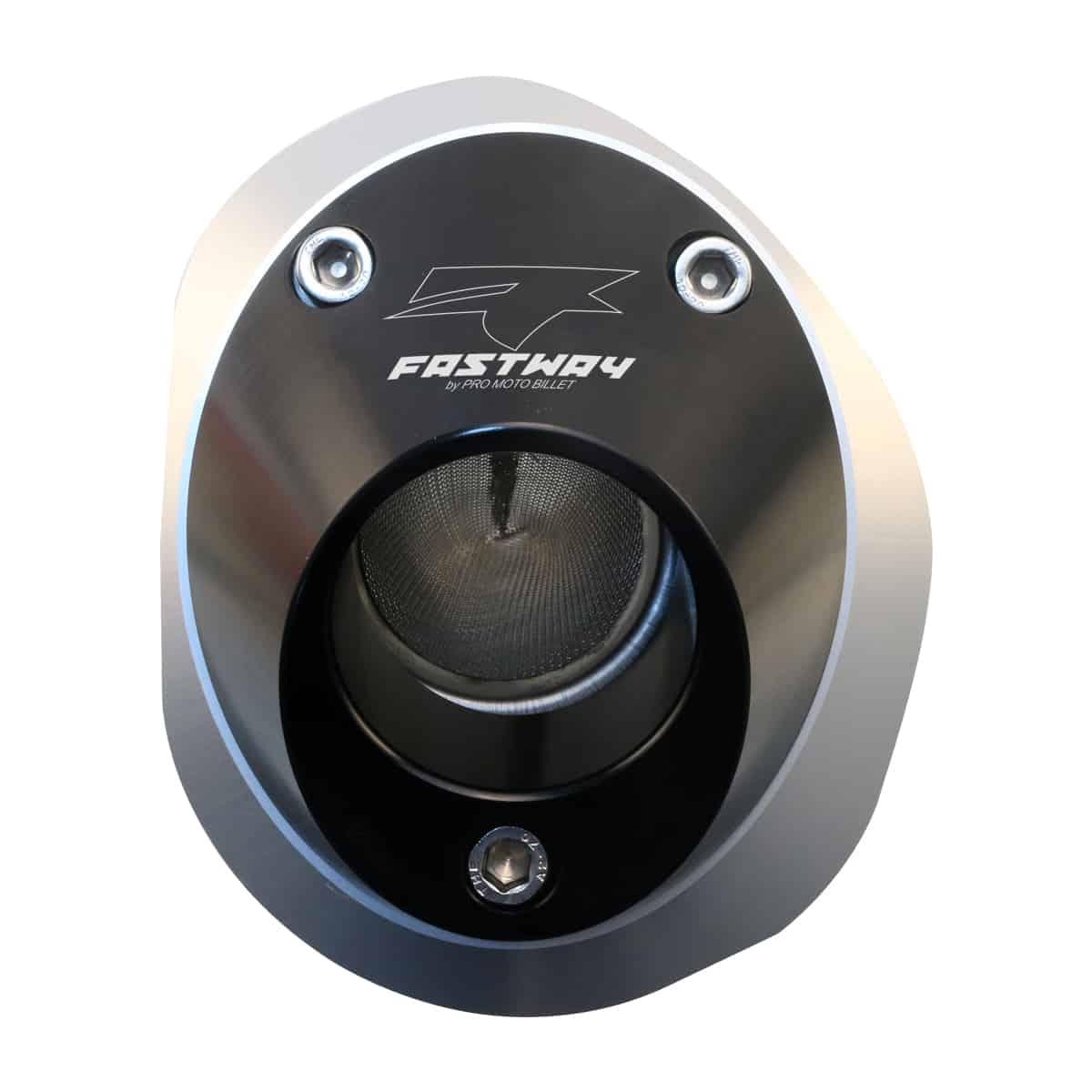 The Fastway Spark Arrestor End Cap is designed as an efficient way to convert your stock muffler into a U.S.F.S. approved spark arrested muffler. When the spark arrestor screens are not required, such as at the MX track, simply remove two machine screws on each end cap and take out the screens. Each end cap is machined out of solid 6061 aluminum and anodized with a protective finish. Designed to quickly and easily convert stock, 4-strokes and some 2-strokes, to United States Forest Service (U.S.F.S.) approved mufflers.