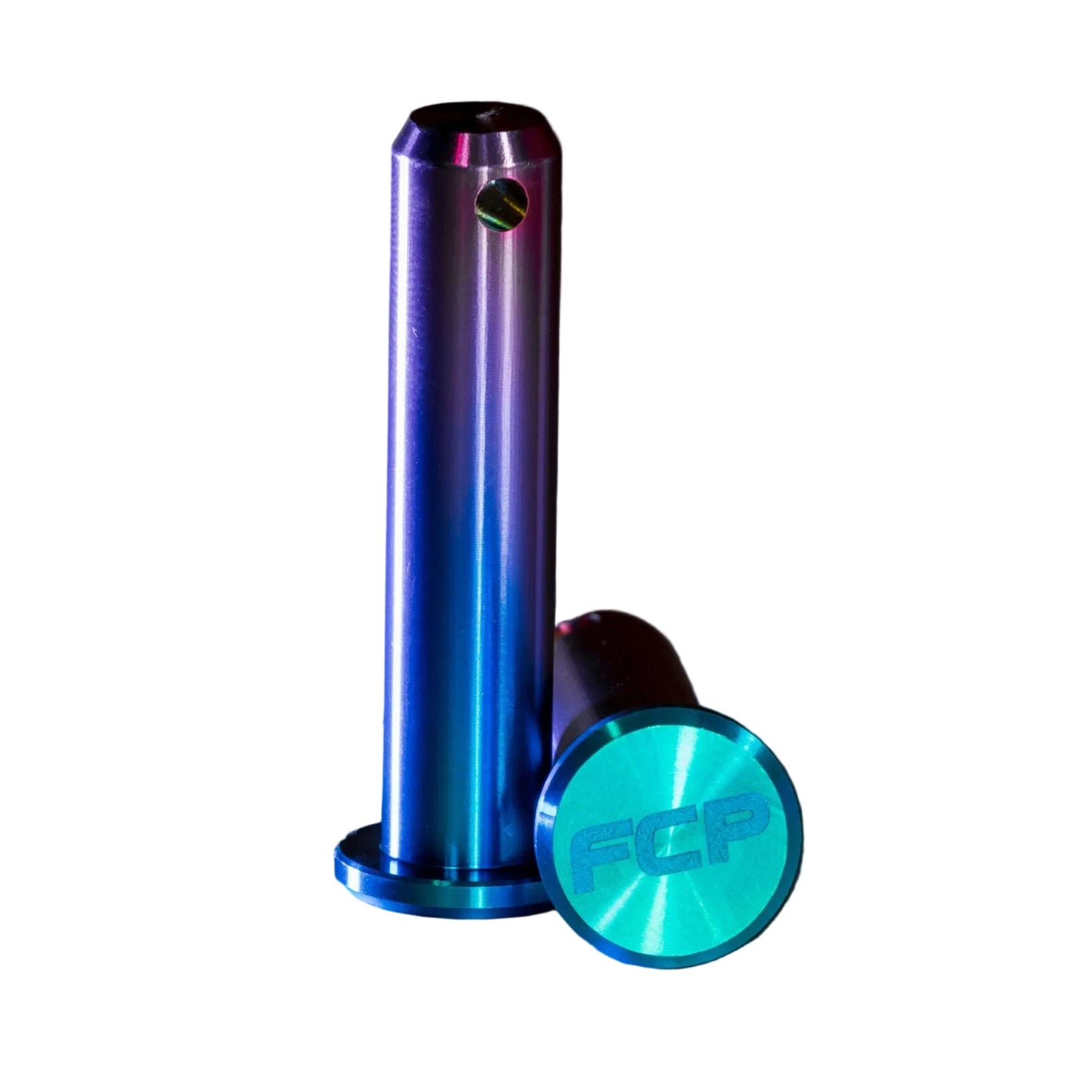 This kit includes the highest quality CNC Machined Titanium foot peg pins with Laser etched logo, Aluminum washers and cotter pins.