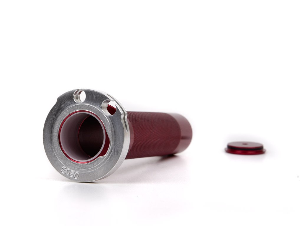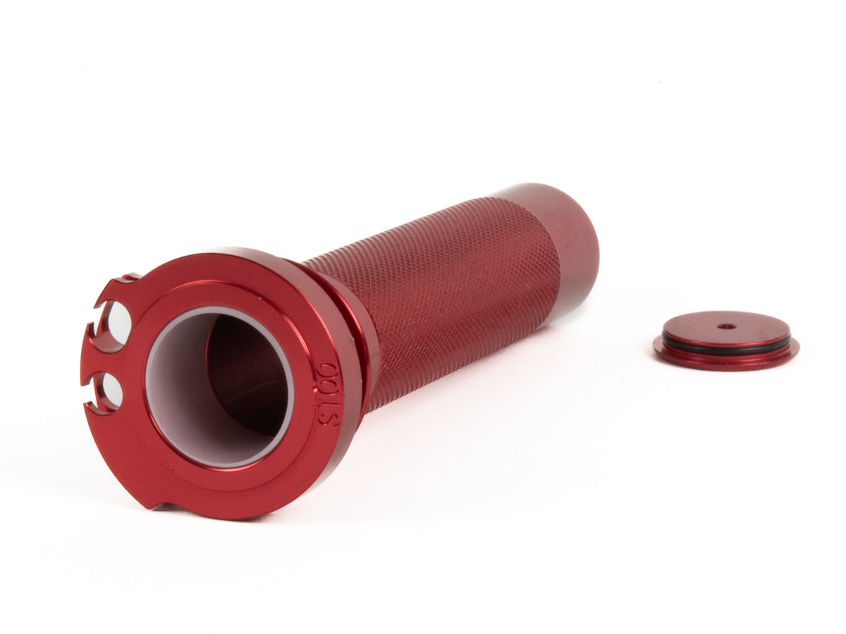- Slide one of our Domino Grips (sold separately) or your grip unto the Quick Turn Throttle Tube.