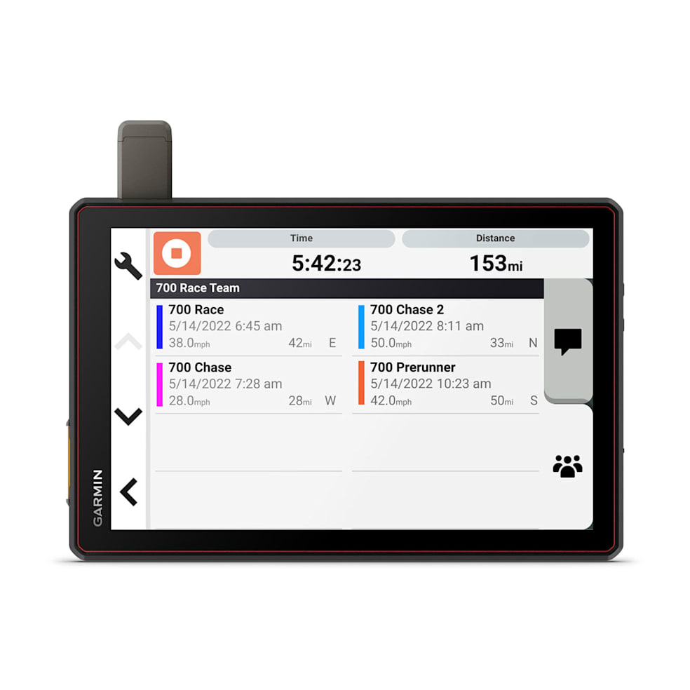 Team tracking with built-in inReach technology lets you see the live positions of your race vehicle and chase truck in real time with global satellite coverage. And you can easily send and receive messages to coordinate repairs. Requires active inReach Flex Team subscription.