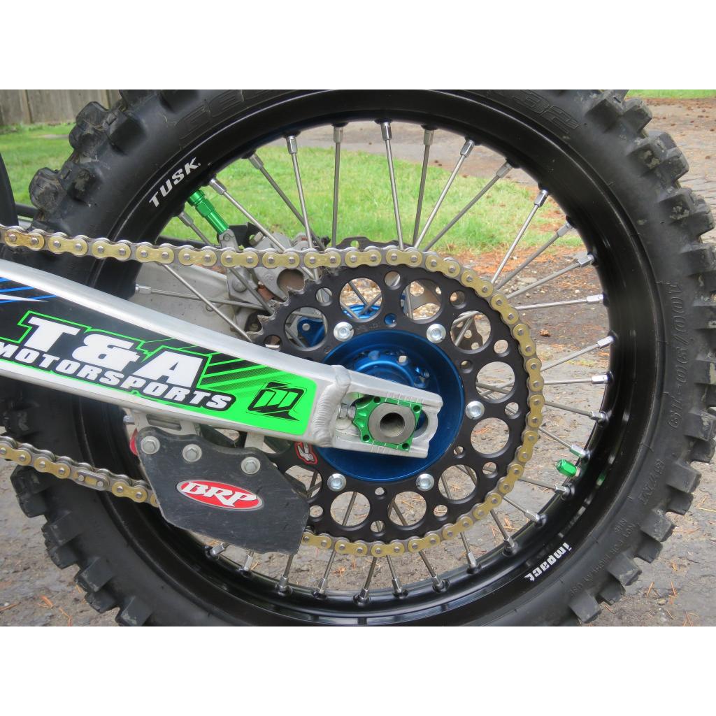Add some style and functionality to your Kawasaki with our MOJO billet anodized axle blocks.