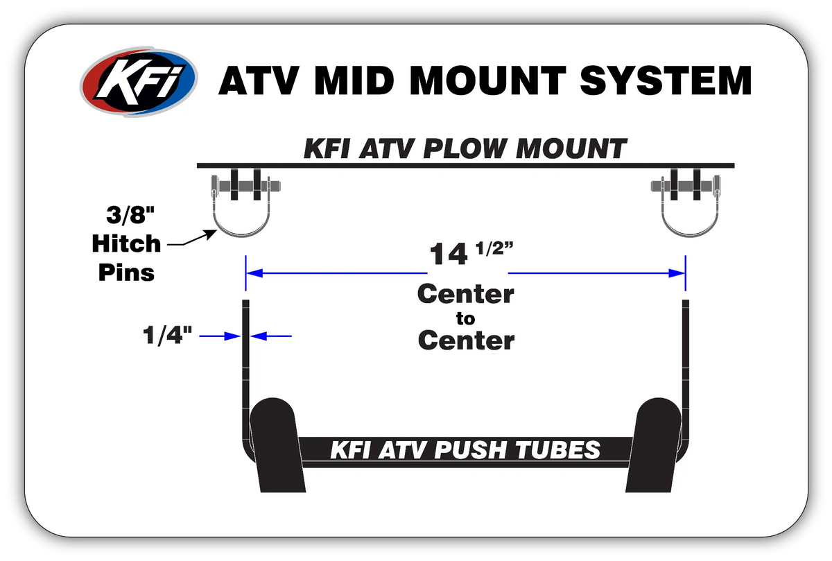 - Designed for the #105000 ATV push tube with pin up widths of 14.50" (Center on Center) using 3/8" Pin (see image example)