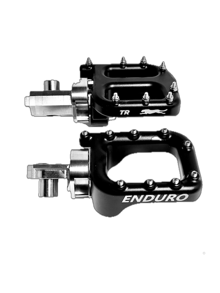 The Enduro Platform *does not* rotate and offers a traditional footpeg option for riders. This is the best option for those riders who are super hard on gear and need something that can take a lot of abuse. Click this link for more details. Or reach out if you have questions.