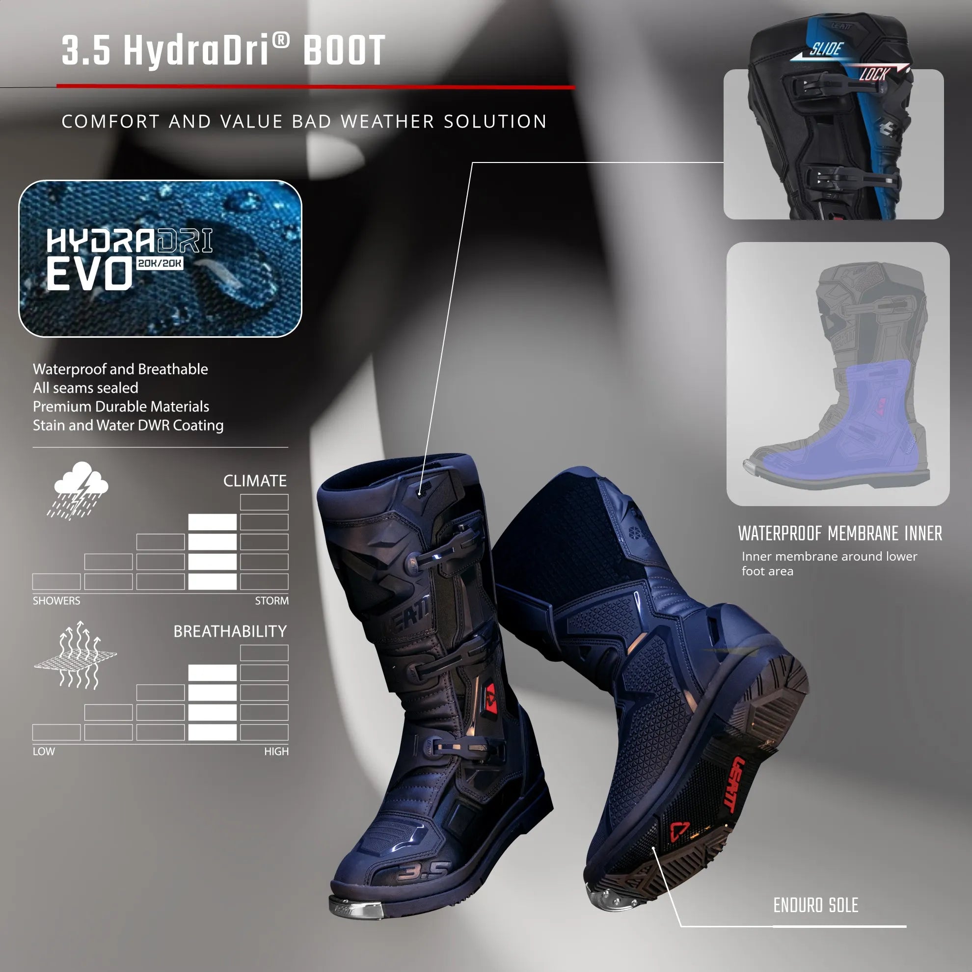 All new for 2024 is the Waterproof, Leatt 3.5 HydraDri boot.