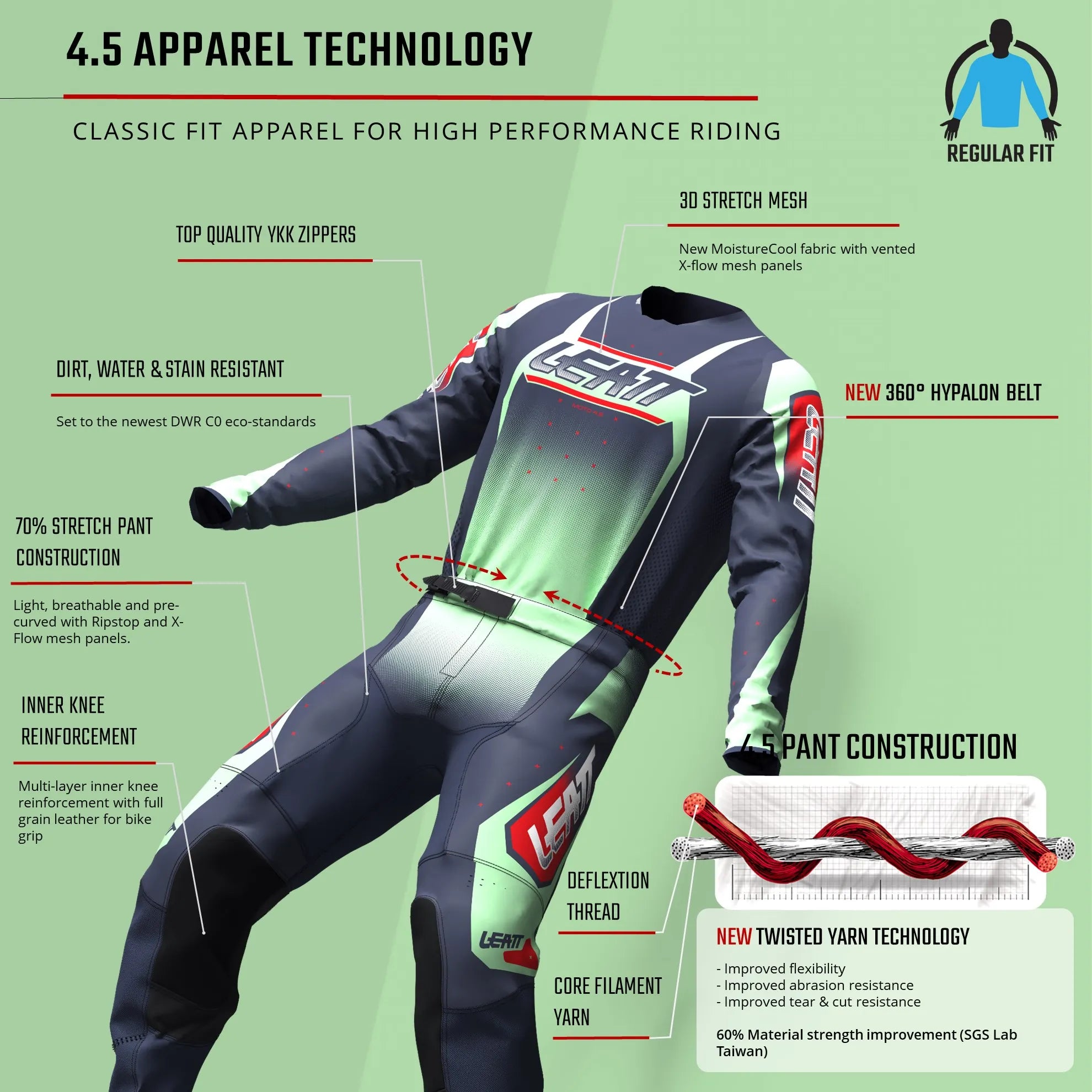 The ultimate riding kit for women. The Moto 4.5 jersey & pant combination offers exceptional comfort and performance. The 4.5 jersey is made from an anti-snag, 3D stretch mesh that provides heat management and airflow. It can be worn with or without body protection and has a low profile stretch fit cuff. The jersey has a built-in silicone grip, keeping it connected to the pants on and off the bike.