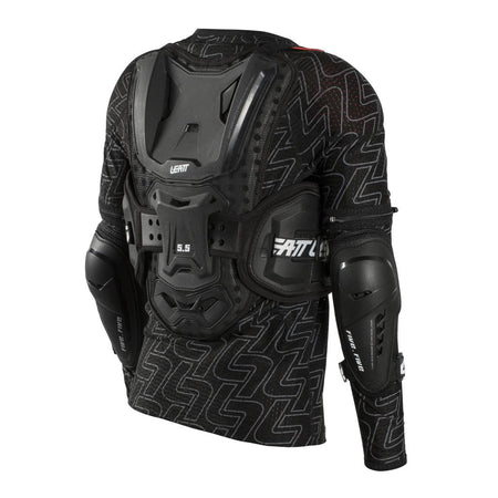 The hard-shell 5.5 Body Protector Junior is lined with 3DF AirFit impact foam and offers chest, back, elbow, shoulder, and side protection.