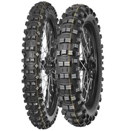 The Mitas TERRA FORCE-EF product line features multiple rubber compound & carcass options combined with terrain specific tread designs for maximum traction and legendary durability. FIM Legal short-knob rear tread pattern with wide-footprint carcass: choice of Hard Enduro Pro Riders and DOT certified.