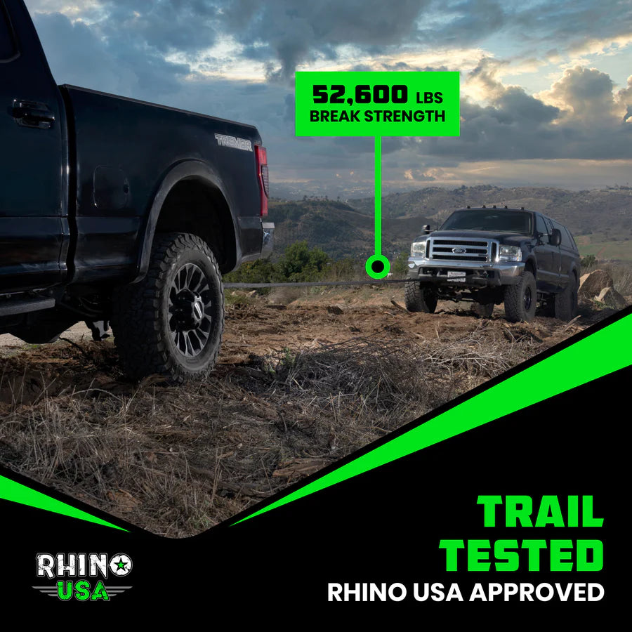 Each rope is built from heavy-duty synthetic fiber engineered to withstand repeated use in the harshest off-road conditions. Reinforced protective sleeves add extra durability and help guard against wear in high-friction areas. With strength ratings built to handle even the toughest recoveries, Rhino USA ropes are ready for any adventure.