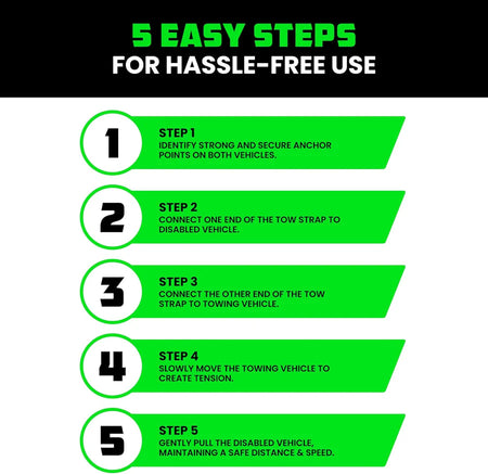 Please note, however, that tow straps are NOT to be used in the same way as kinetic ropes. Tow straps are meant to be used for static recoveries (no running start) and not dynamic recoveries (requires a running start to build up kinetic energy). The stretch is more of an insurance policy, not a main feature. Check out our kinetic ropes if you’re interested in a dynamic recovery that requires a running start.