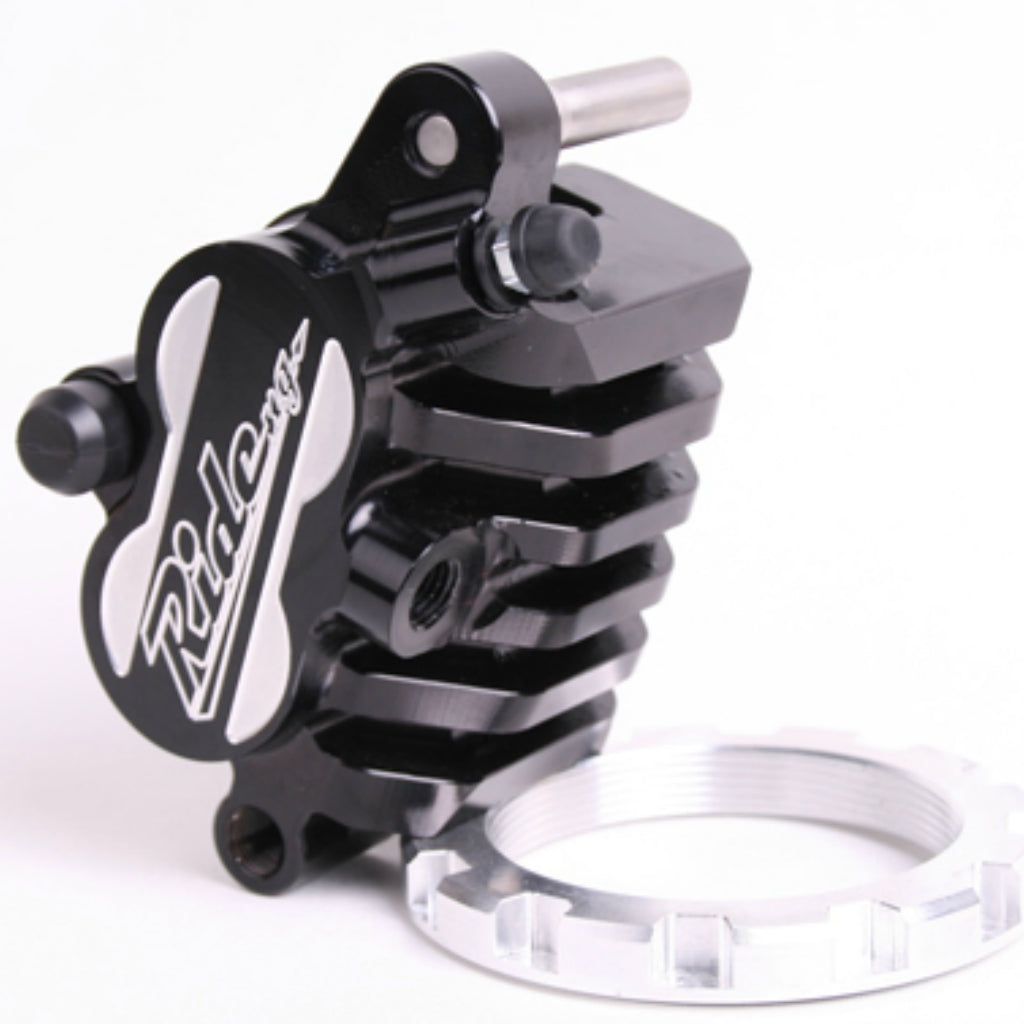 This product is all about improving the braking performance of modern day dirt bikes. Ride Engineering's billet caliper achieves this with larger pistons, a solid, flex free body and with cooling fins that allow air to pass completely through. Not only does it increase braking power similar to an over-sized rotor kit, but the feel and modulation on how it applies the pressure to the brake pads is what's really unique. Initially the lever feels softer, and with less effort the connection between your finger tips and the front tire is greatly improved. Add a Ride Eng. 270mm rotor and braided steel line to eliminate fade for the ultimate braking package.