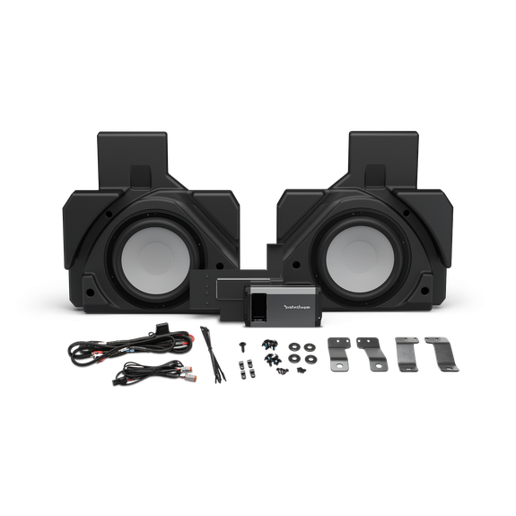 Purpose Built exclusively for select Can-Am® X3 MAX models, this dual rear subwoofer kit provides next level bass performance, an Element Ready™ design, and simple installation. The kit is designed as an upgrade for select aftermarket Rockford Fosgate Can-Am Stage-3/4/5/6 systems. It features two Element Ready™ 10" loaded subwoofer enclosures and 1,000 watt, next-generation IPX6 Element Ready™ amplifier. Includes all necessary wiring harnesses and hardware. Fits 4-seat models only, not 2-seat. See COMPATIBILITY chart to verify system requirements and fitment before purchasing.