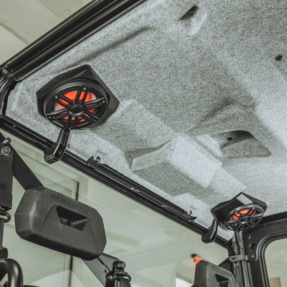 - RNGR18-RSE: 6.5" rear speaker pods for select Polaris® Ranger (requires Polaris® poly roof)