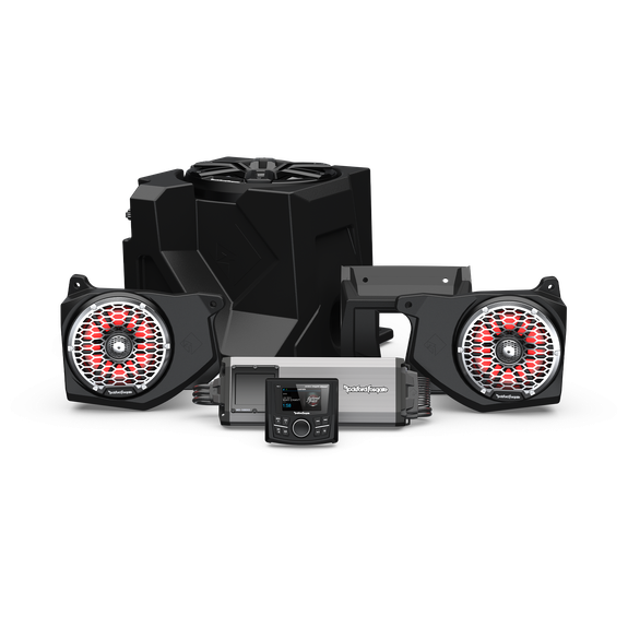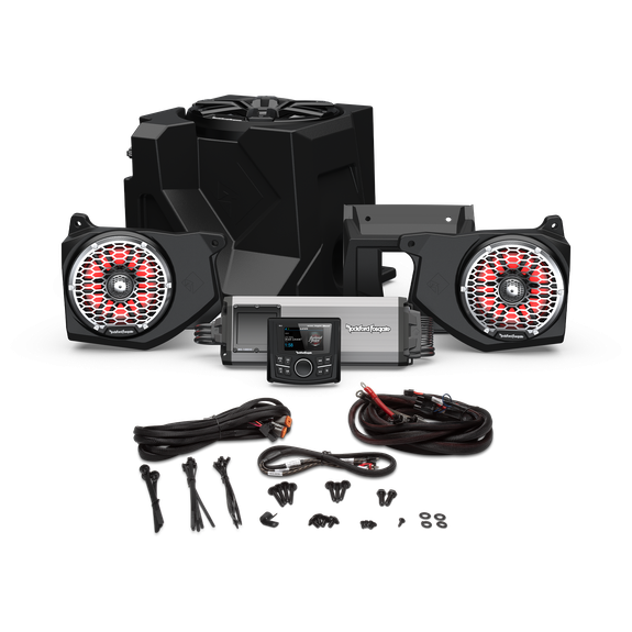 The Ranger Stage-5 is an aftermarket 1,500-watt M2 Color Optix™ front audio system with subwoofer. This kit upgrades all speakers to the M2 Color Optix™ models for the highest sound quality. The multimedia source unit is also upgraded to the PMX-3 featuring a SiriusXM® ready tuner, and component video input for adding a backup camera in the future. The 1,500-watt 5-channel amplifier gives you complete control of the 6.5” front speakers and 10” subwoofer with future expansion for a secondary 10” subwoofer with rear-seats and 6.5” rear speakers. The system is designed for select 2018 and newer XP 1000 FULL-SIZE (3-Seat) and CREW (6-Seat) models.