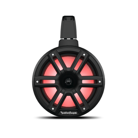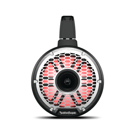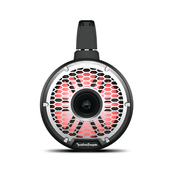 The M2WL-8HB Color Optix™ 8" 2-way speakers deliver loud, clear, accurate sound, and light the way for your fresh or salt-water journey! Exceptional clarity and distance is possible with the built-in loaded horn, designed to project music to the skier or wakeboarder. The M2 can be installed using direct mount or a clamp mount method that provides 360-degree rotation on wake tower bar sizes from 1.5” to 3”. The M2 includes stainless-steel and black “sport” grille inserts and features a rear illuminated 3DIL™ medallion that can be rotated 360-degrees for proper orientation. The speakers connect with the Rockford Fosgate Color Optix™ Controller (sold separately) and RF Connect App, allowing you to customize both front speaker and rear medallion with your own color patterns.
