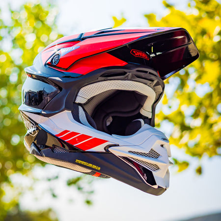 Hit the dirt with SHOEI VFX-Evo Jammer - top safety, SNELL certified, aggressive style, and unmatched comfort for the off-road adventurer.