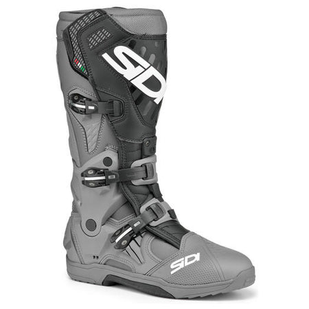 All the Support in the Lightest Structure. The Sidi Crossair Boot is the lightest professional boot ever crafted, merging superior performance and safety. Favored by professional riders in Motocross, Hard Enduro, and Superenduro, it delivers the strength of premium Sidi materials in an astonishingly light package, weighing just 1665 grams (size 43)—significantly lighter than its competitors. The internal fiberglass-reinforced exoskeleton provides robust support and safety while keeping the construction impressively light. Two pivot points on the lateral and medial sides offer excellent rider feedback, and the MATERIIS sole, developed with professional riders, provides an unmatched level of grip and durability.