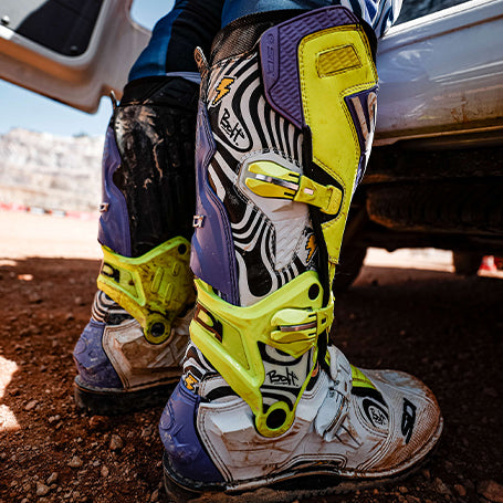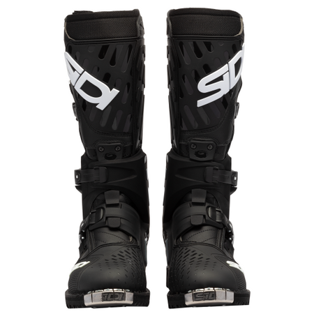A boot that sets the bar higher. Developed and used by professional hard-enduro rider Billy Bolt. The Crossair HD is the world's first boot designed and built specifically for hard enduro and super enduro disciplines. It delivers all the solidity of a premium Sidi boot, weighing just 1700 grams (size 43), making it much lighter than anything else. An internal fiberglass-reinforced exoskeleton provides full support and safety while maintaining an incredibly light construction. The rubber sole is directly stitched to the upper, and what makes it truly special is its design and composition derived from trial boots. This allows the boot to be lightweight, protective, and provide unparalleled grip both when riding on the footpegs and in contact with any terrain encountered during hard enduro activities. Crossair HD is the result of a relentless dedication to engineering a product that, through continuous evolution, met all of Billy's requests and fulfilled every need. It embodies the perfect fusion of Billy Bolt's unmatched style and Sidi manufacturing expertise.