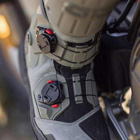SIDI Taurus is a premium adventure touring boot inspired by SIDI’s original motocross line. Lightweight and compact, it offers solid support and flexibility for long rides and off-road exploration. The NUUN OO1M dial system gives quick, one-hand fit control, while the Materiis sole provides top grip and comfort. Built for protection, performance, and the freedom to ride beyond the map.