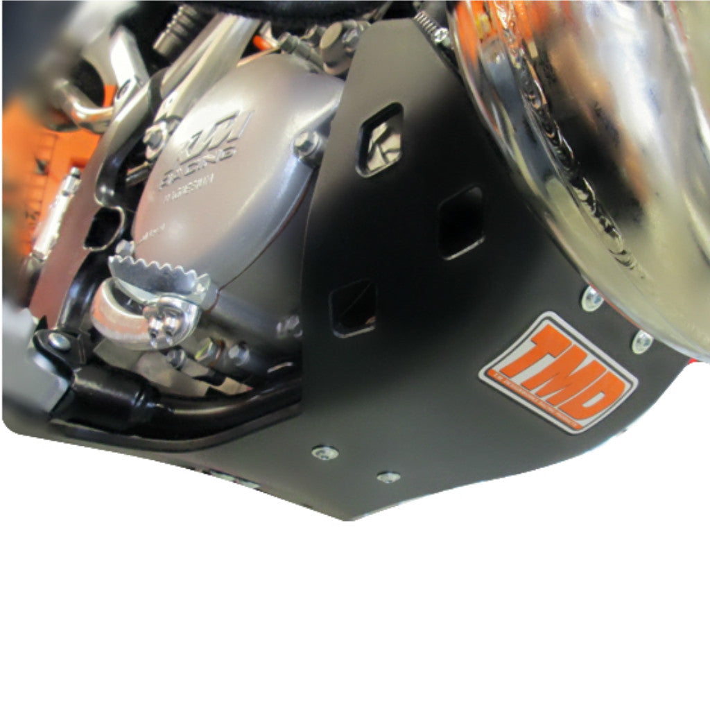 - TMD's frame-mount plastic skid plates reduce sound unlike aluminum that increase frame rattle.