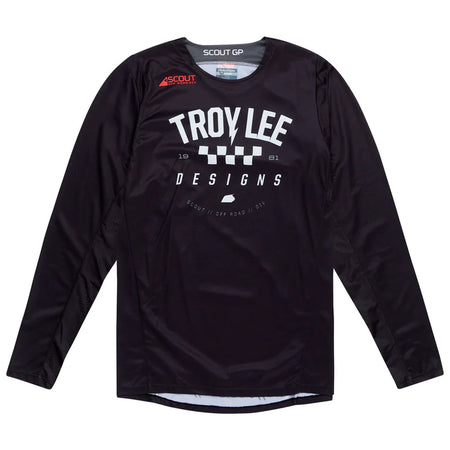 Made for the enthusiast, the Scout GP gear combines technology, style, and fit for a fast look on every trail. The Scout GP Jersey is made with a micro-holed mesh polyester and wicking quick dry finishes to keep air flowing. A minimalist cuff design, ribbed street v-neck collar, and reflective graphics in key areas provide a classic look and safety.