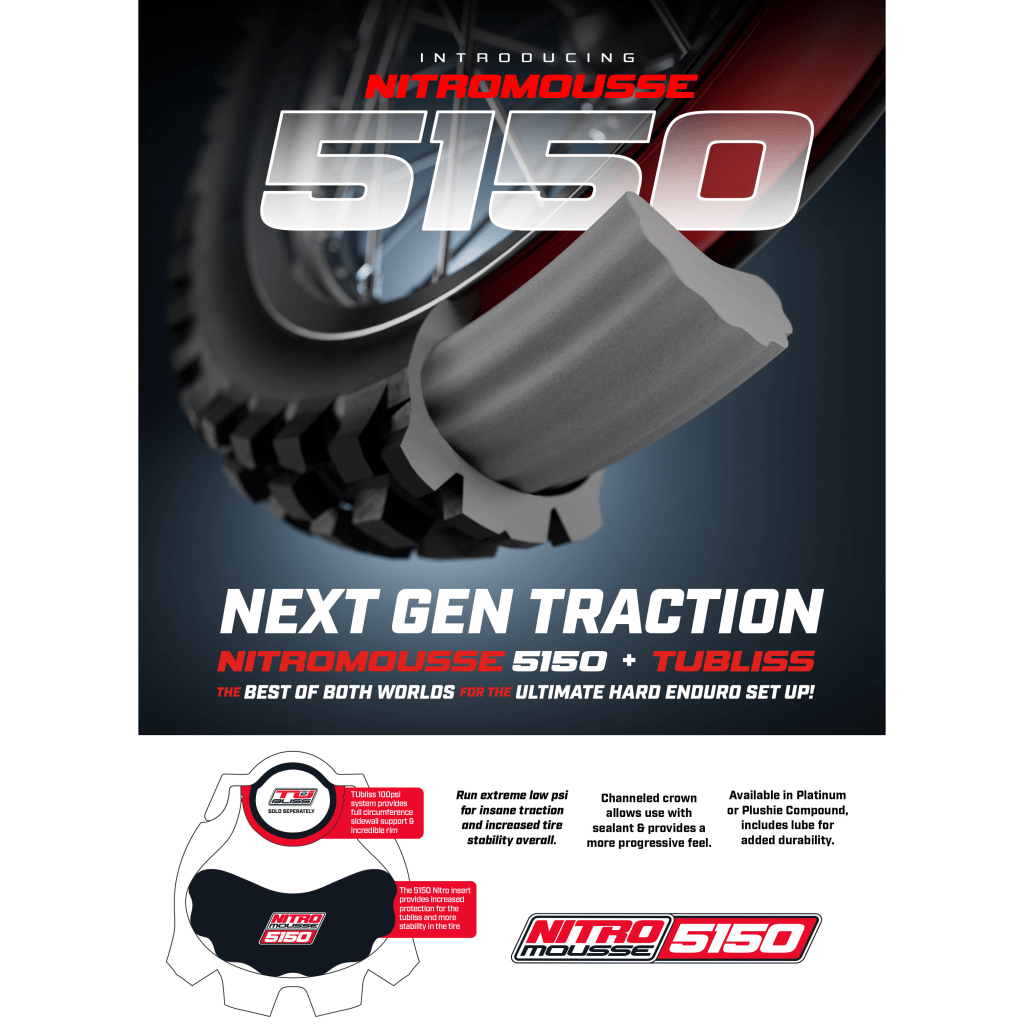 The Nuetech 5150 Nitro Mousse is the best of both worlds! Designed to work seamlessly with Nuetech’s TUbliss system, the 5150 Nitro Mousse creates unmatched performance. This allows you to run extremely low air PSI without worrying about damage to the hoop or TUbliss system. Furthermore, the channeled crown allows the use of tire sealant for the rider wanting the ultimate fail safe.