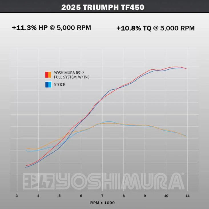 The Triumph TF450 is here and Yoshimura has our RS-12 Signature Series Full System ready to tackle the job of enhancing performance on this new 450 MX machine.